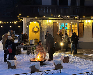 Profitez d’une soirée alpine authentique dans le chalet, entouré d’une ambiance chaleureuse et d’un décor hivernal de montagne. La soirée débute par une montée en télécabine jusqu’à la station de Furi, suivie d’une courte marche jusqu’au chalet, où les hôtes sont accueillis à l’extérieur avec du vin chaud et un brasero.